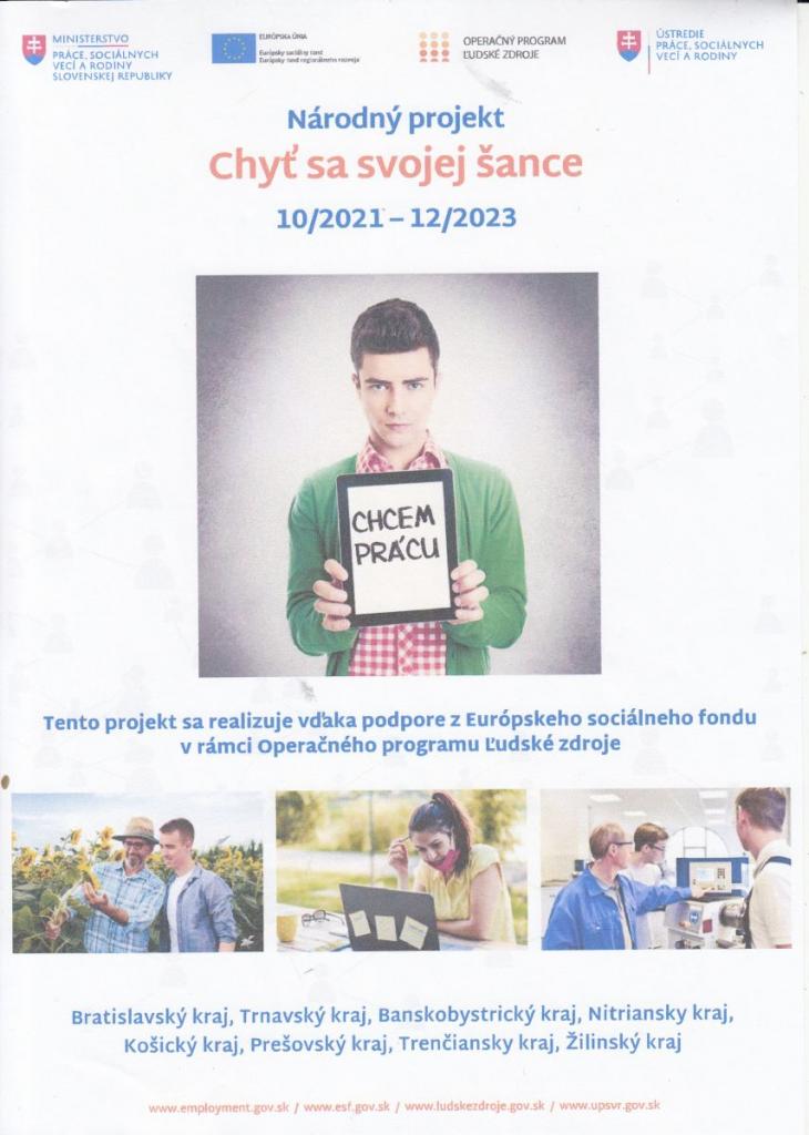 V rámci projektu je vytvorené 1 pracovné miesto na pozícií pomocný robotník